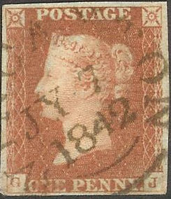 [JG] plate 2, on piece cancelled with Poulton Penny Post in black and then a red maltese cross.