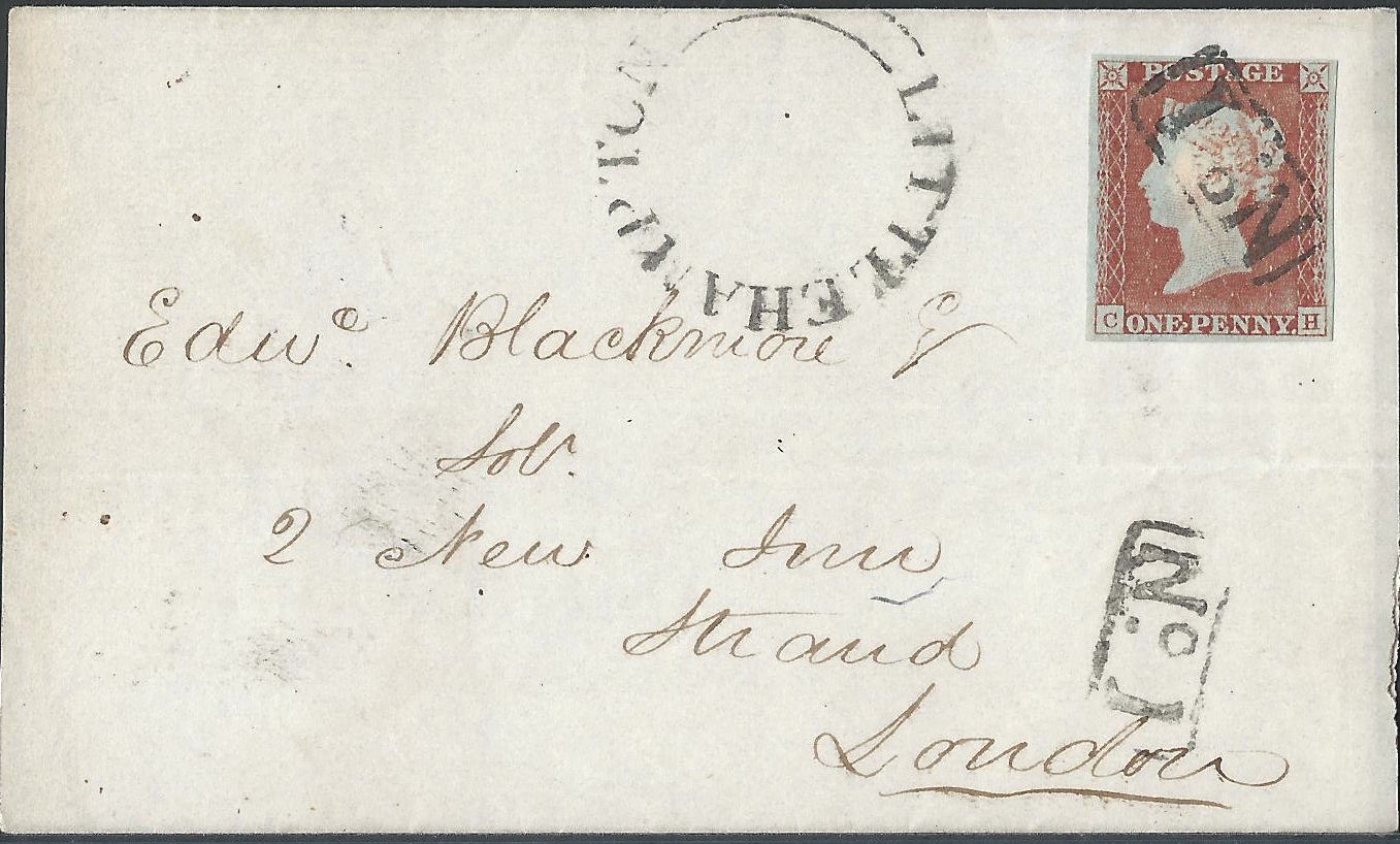 [CH] plate 46, from Littlehampton to London, dated 1 May 1845, cancelled with a black boxed No 1 Receiving House handstamp