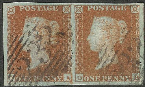 [OA-OB] pair, plate 110, cancelled with black Irish numerals (232 Galway)