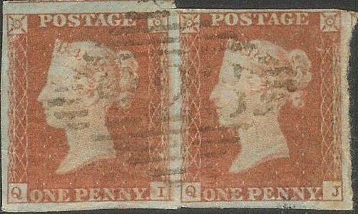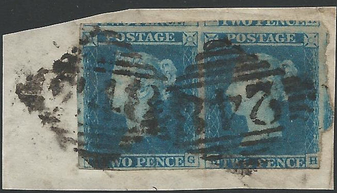 [BG-BH] pair, plate 3, cancelled with black Irish numerals (248 Goresbridge)