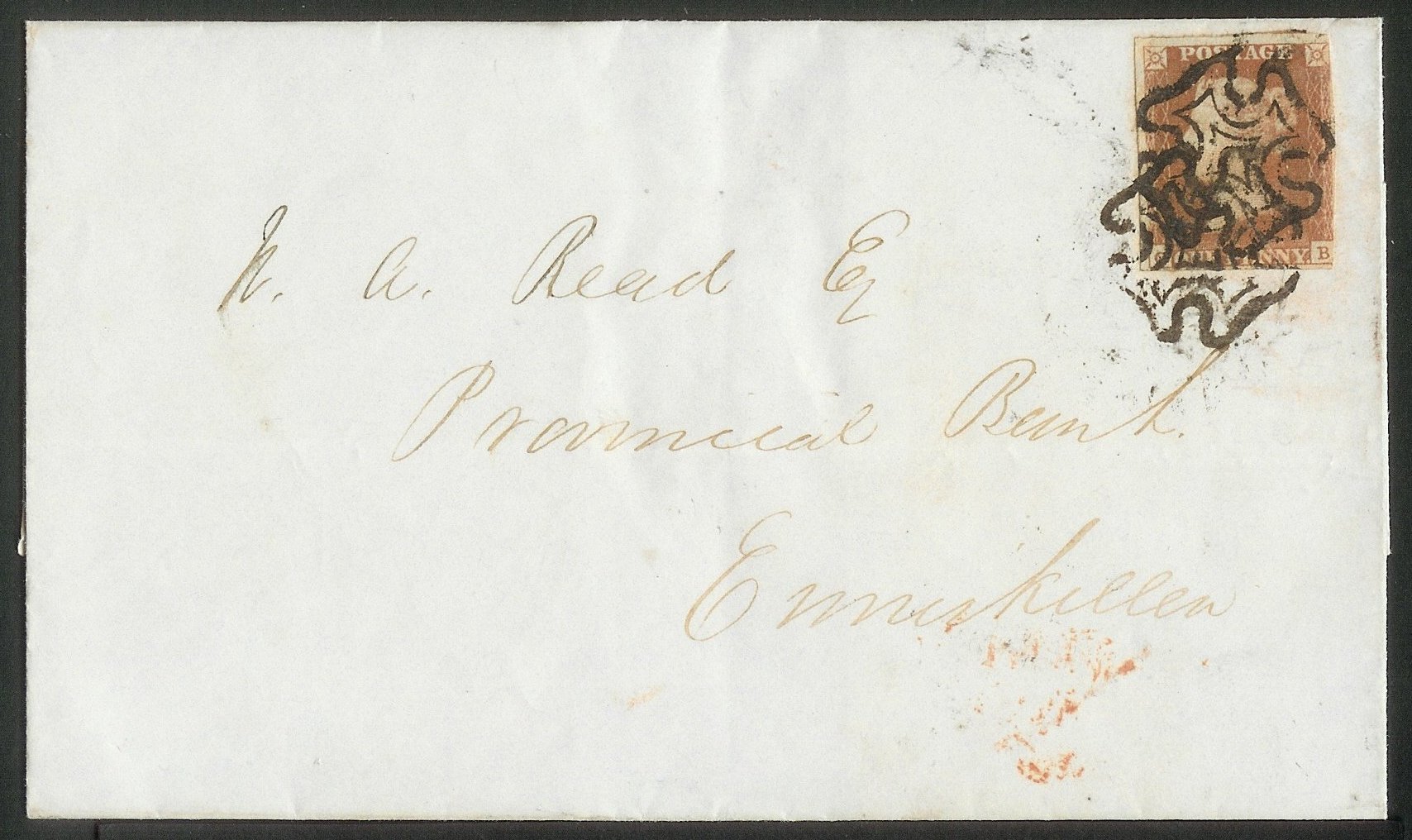 [GB] plate 9 in red, to Enniskillen dated 28 February 1841, cancelled with two black Maltese crosses