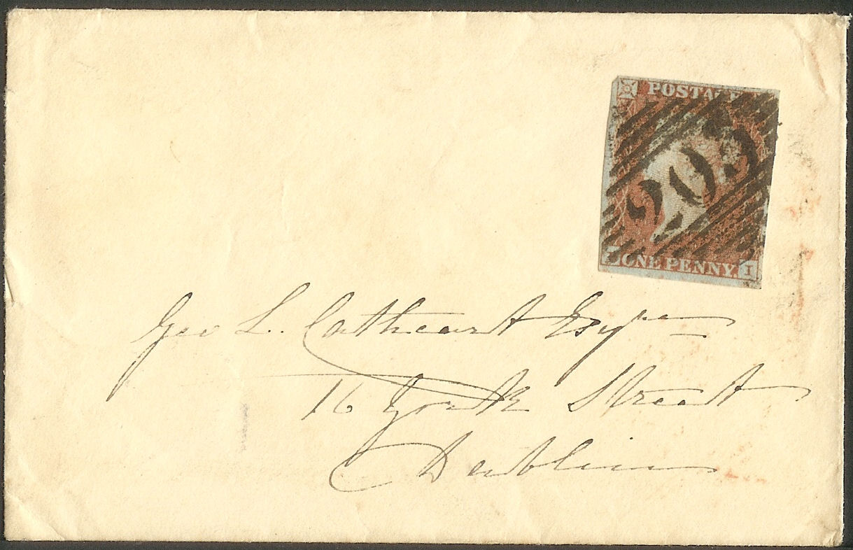 [SA] plate 11, from Durrow to Dublin dated 20 October 1841, cancelled with black maltese cross of Durrow.