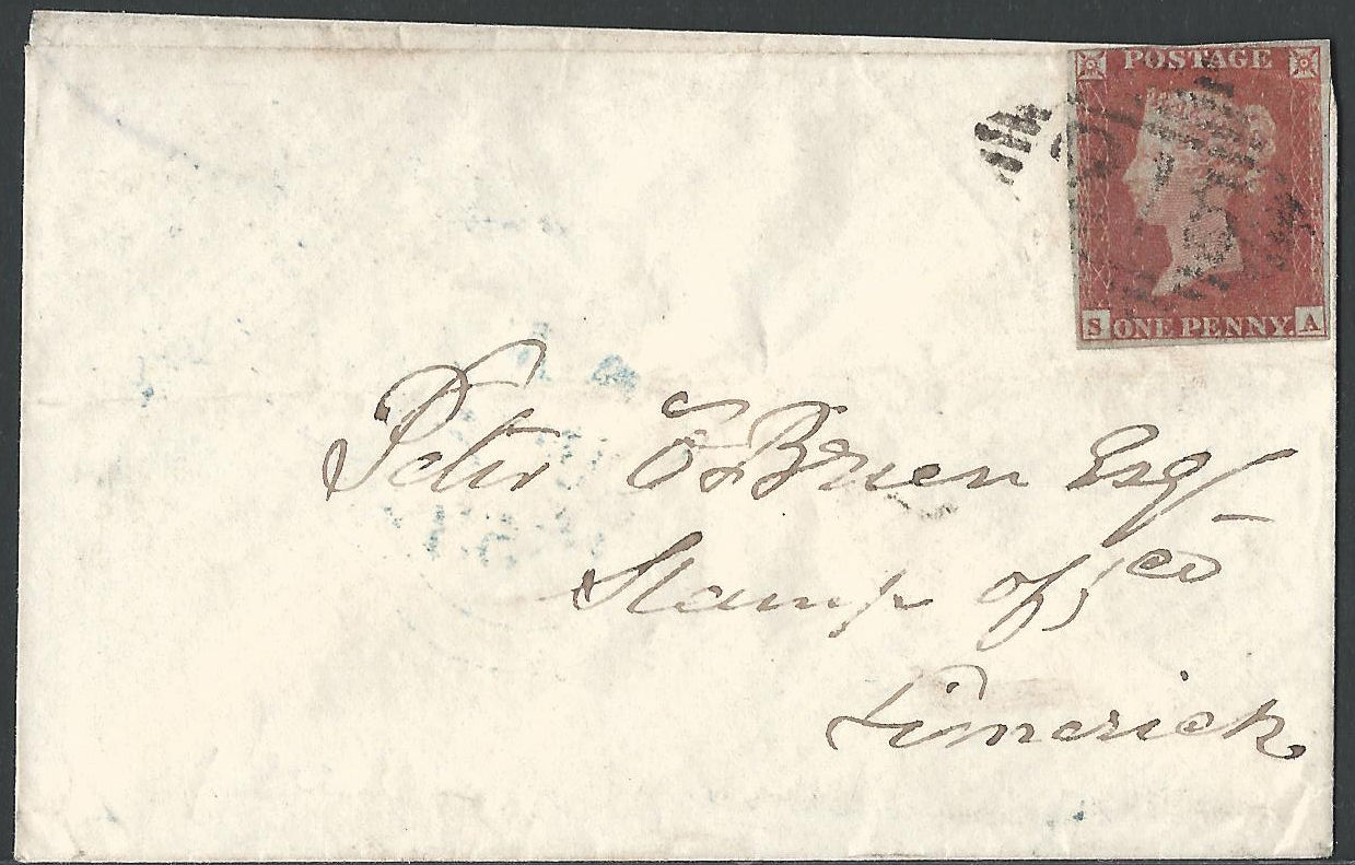 [PL] plate 9, cancelled with red maltese cross on entire from Ennis to London dated 22 February 1841. Late use of red maltese cross Handstruck 1 to denote additional charge for redirection on arrival in London