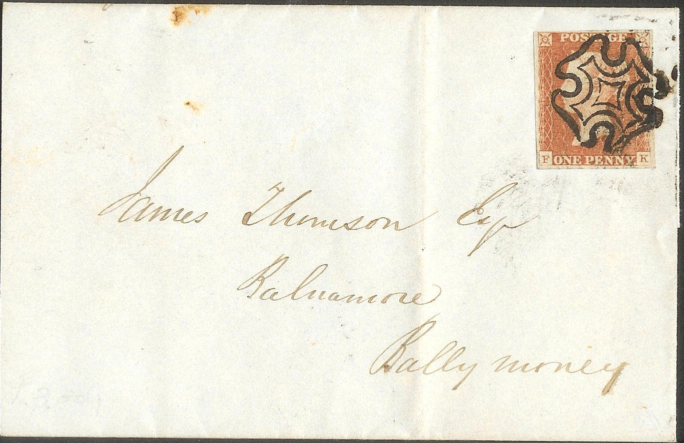 [FK] from Coleraine to Ballymoney, dated 6 August 1842, cancelled with a black Maltese cross