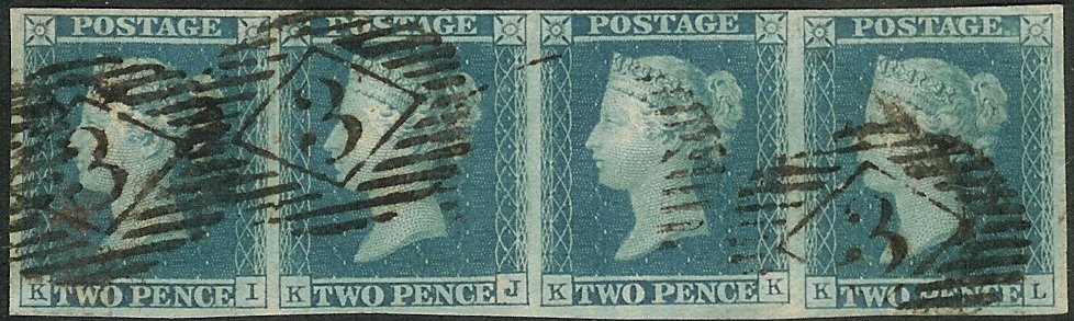 [KJ-KL] marginal strip of three, cancelled with black London numerals (Inland 17)