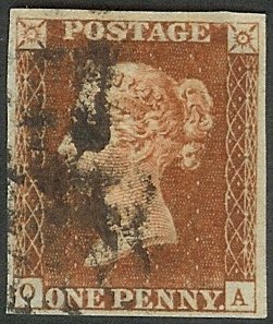 Plate 8 was used to print black stamps (in 1840) and red stamps (in 1841).