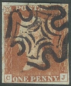 [CJ] in red, cancelled with a black Maltese cross (state 1)