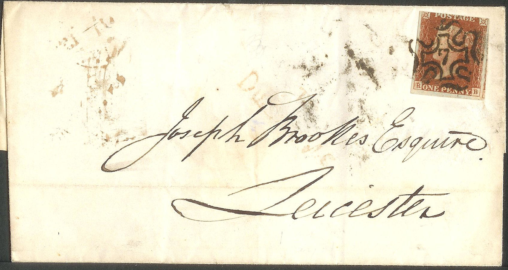 [RB] from London to Leicester, dated 15 May 1844, cancelled with a black London Number 7 Maltese cross Penultimate day of the usage of numbered crosses in London