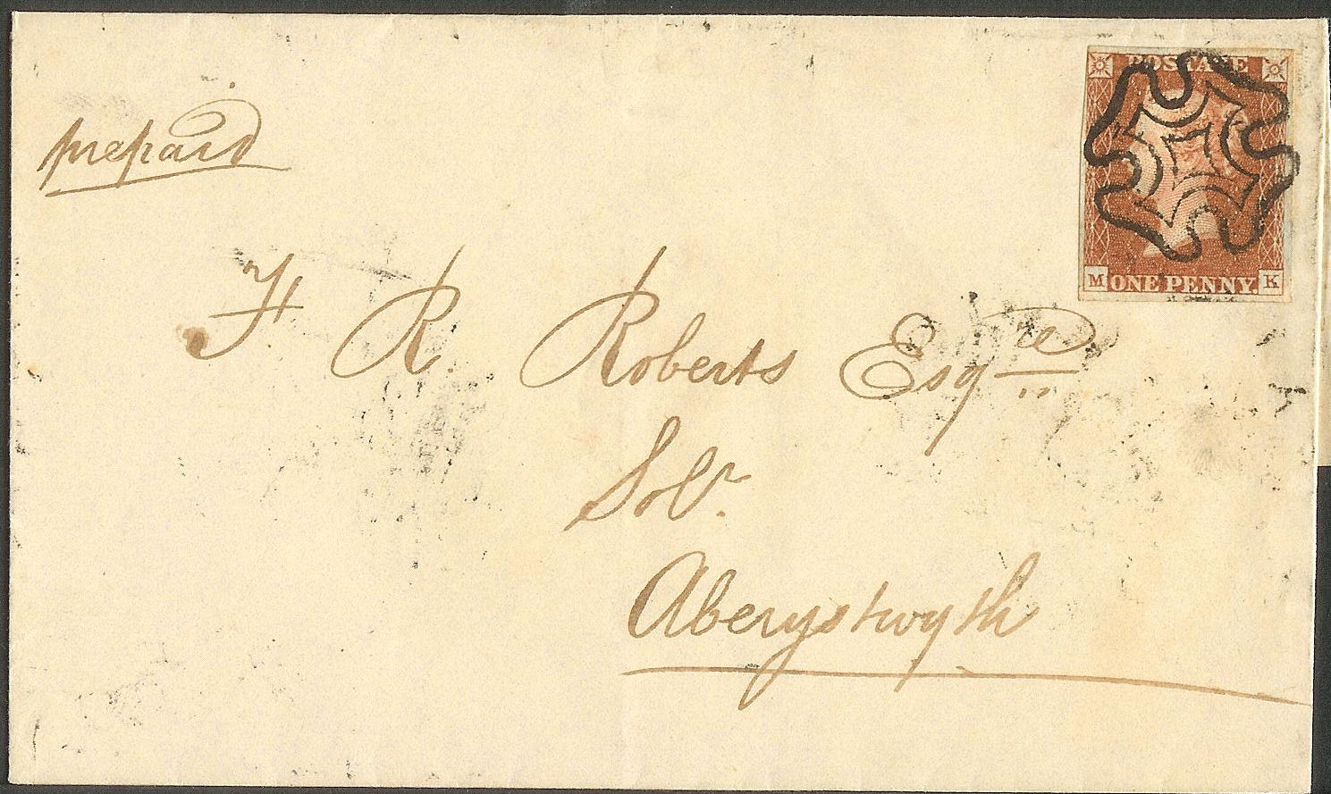 [MK] from Cardigan to Aberystwyth, dated 16 January 1843, cancelled with a black Maltese cross