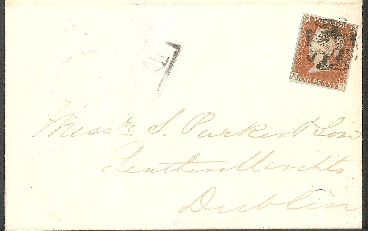 [KC] from Cork to Dublin, dated 6 March 1844, cancelled with a black Maltese cross (Cork special)