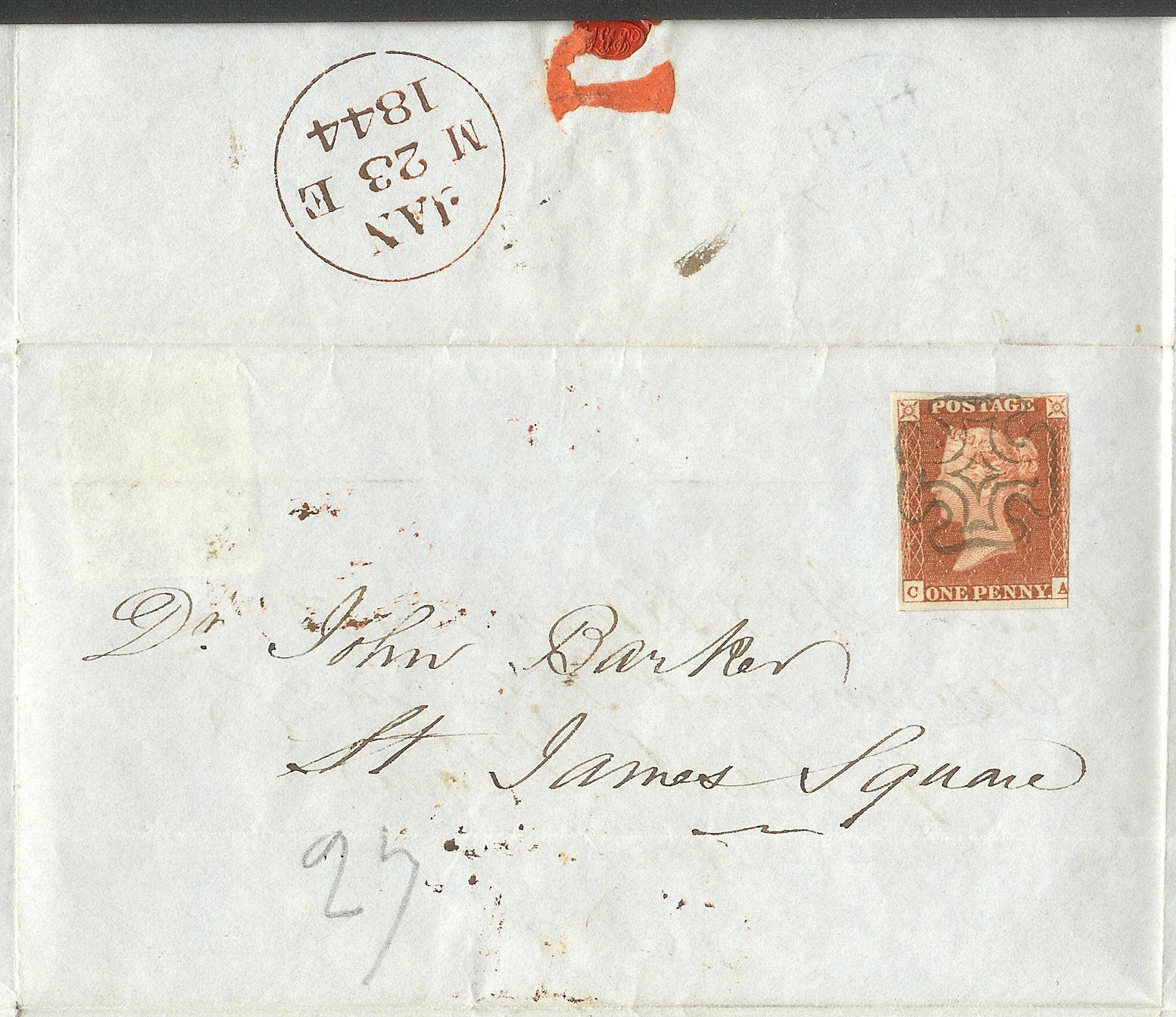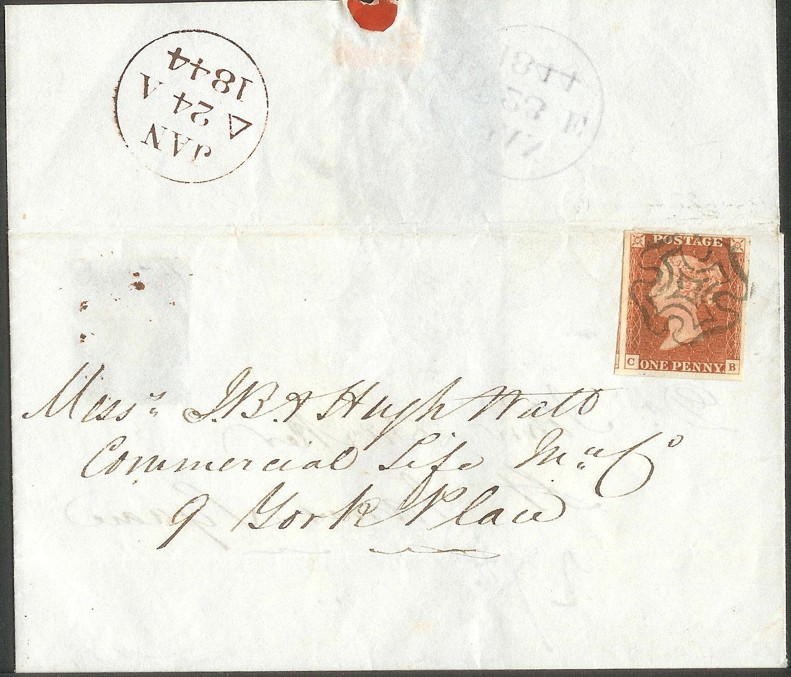 [CB] on local Edinburgh wrapper, dated 24 January 1844, cancelled with a black Maltese cross
